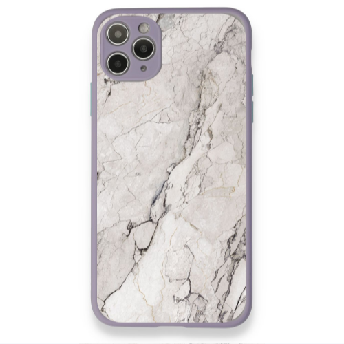 Apple iPhone 12 Pro Max Beyaz Çizgili2 Lila Hux Telefon Kılıfı