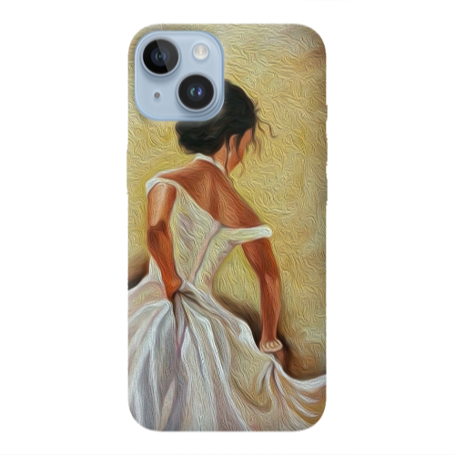 Apple iPhone 14 Beyaz Elbise Lila Renkli Silikon Telefon Kılıfı