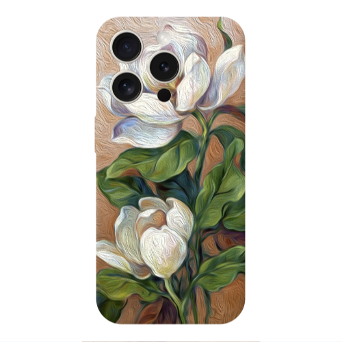 Apple iPhone 15 Pro Max Beyaz Gül2 Sarı Renkli Silikon Telefon Kılıfı