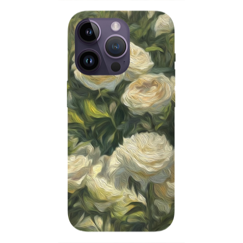 Apple iPhone 14 Pro Beyaz Gül Koyu Yeşil Renkli Silikon Telefon Kılıfı