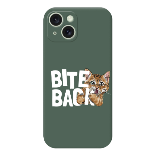 Apple iPhone 15 Bite Back Koyu Yeşil Renkli Silikon Telefon Kılıfı