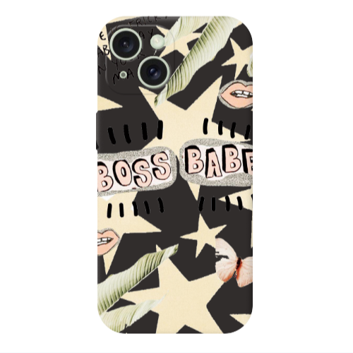 Apple iPhone 15 Boss Babe 2 Siyah Renkli Silikon Telefon Kılıfı