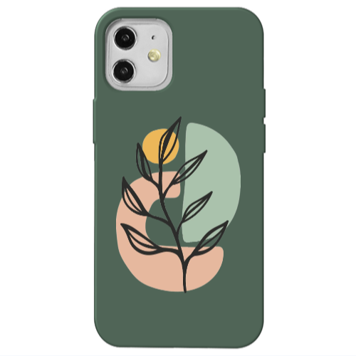 Apple iPhone 12 Mini Buğday Kahve Koyu Yeşil Renkli Silikon Telefon Kılıfı