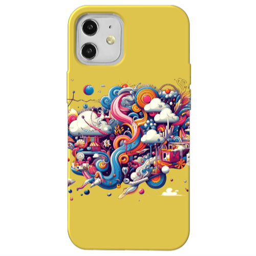 Apple iPhone 12 Mini Bulut Direk Sarı Renkli Silikon Telefon Kılıfı