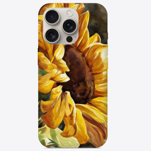 Apple iPhone 16 Pro Max Büyük Ayçiçeği Siyah Renkli Silikon Telefon Kılıfı