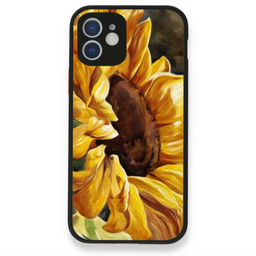 Apple iPhone 12 Büyük Ayçiçeği Black Glossy Telefon Kılıfı