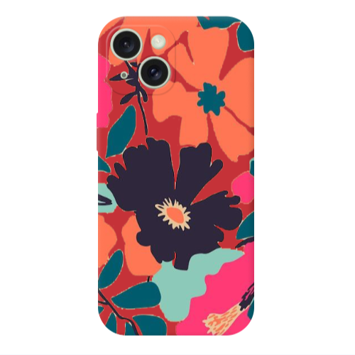 Apple iPhone 15 Büyük Çiçek Kırmızı Renkli Silikon Telefon Kılıfı
