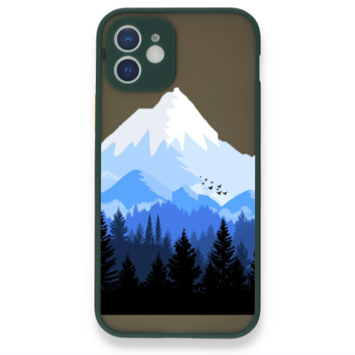 Apple iPhone 12 Mini Buzul Beyaz2 Koyu Yeşil Hux Telefon Kılıfı