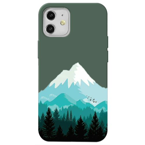 Apple iPhone 12 Buzul Beyaz Koyu Yeşil Renkli Silikon Telefon Kılıfı