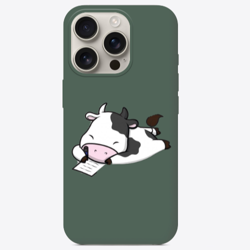 Apple iPhone 16 Pro Çalışkan İnek Koyu Yeşil Renkli Silikon Telefon Kılıfı