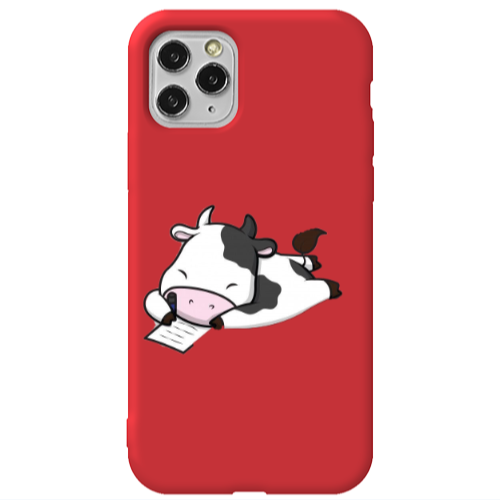 Apple iPhone 11 Pro Max Çalışkan İnek Kırmızı Renkli Silikon Telefon Kılıfı