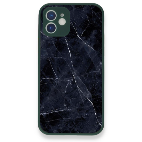 Apple iPhone 12 Mini Çatlak Siyah Koyu Yeşil Hux Telefon Kılıfı