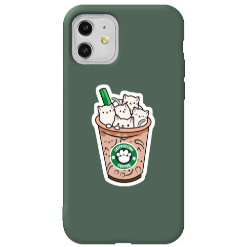 Apple iPhone 11 Catpuccino Koyu Yeşil Renkli Silikon Telefon Kılıfı