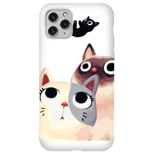 Apple iPhone 11 Pro Max Cats Beyaz Renkli Silikon Telefon Kılıfı