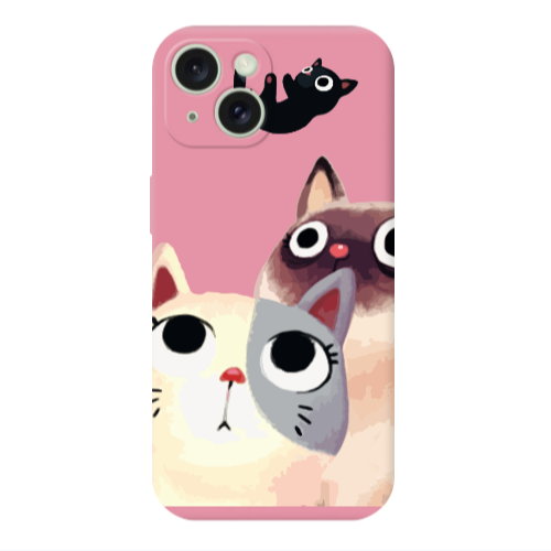 Apple iPhone 15 Cats Pembe Renkli Silikon Telefon Kılıfı