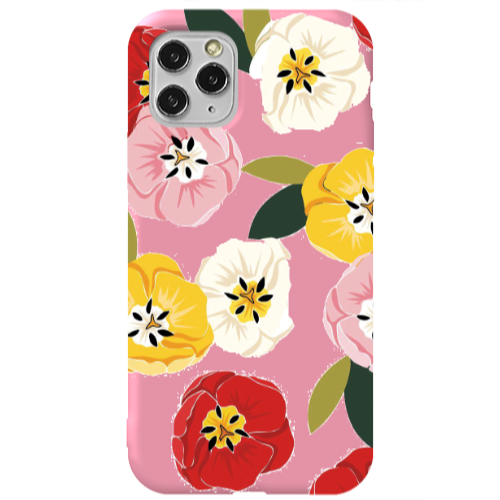 Apple iPhone 11 Pro Çiçek 4 Pembe Renkli Silikon Telefon Kılıfı