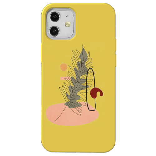 Apple iPhone 12 Mini Çiçek 5 Sarı Renkli Silikon Telefon Kılıfı