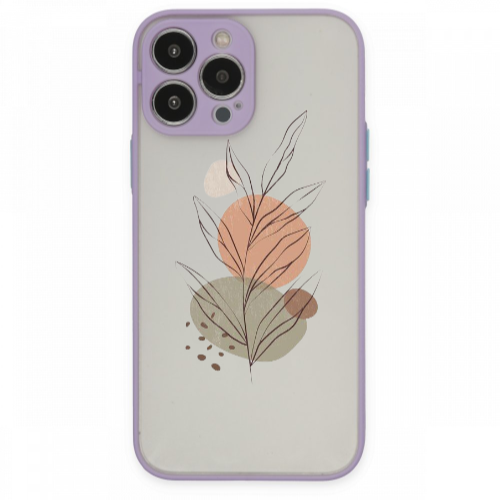 Apple iPhone 13 Pro Max Çiçek Art Lila Hux Telefon Kılıfı