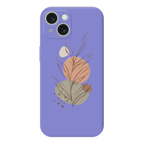 Apple iPhone 15 Plus Çiçek Art Lila Renkli Silikon Telefon Kılıfı