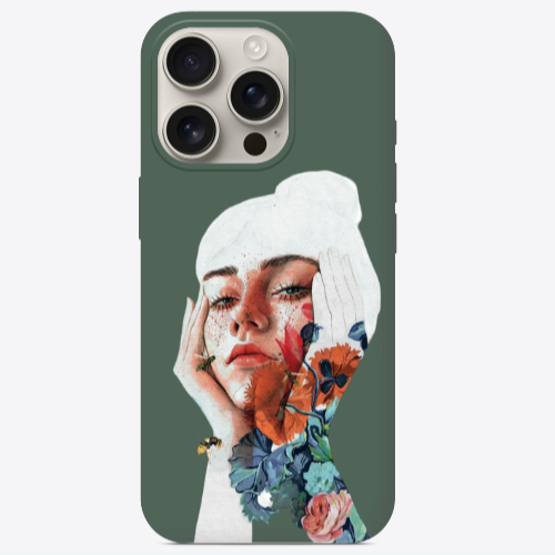 Apple iPhone 16 Pro Çiçek Kadın Koyu Yeşil Renkli Silikon Telefon Kılıfı