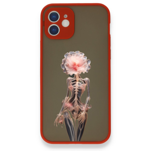 Apple iPhone 12 Çiçek Kadın2 Kırmızı Hux Telefon Kılıfı