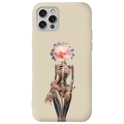 Apple iPhone 12 Pro Çiçek Kadın2 Krem Renkli Silikon Telefon Kılıfı