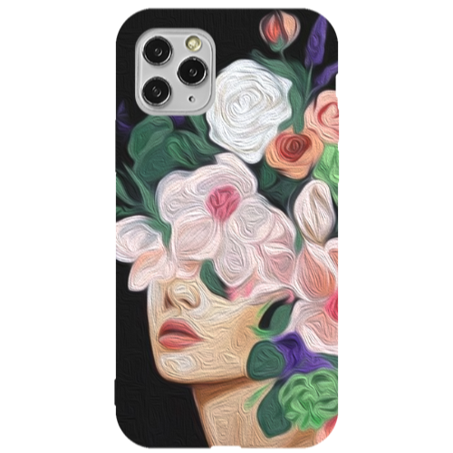 Apple iPhone 11 Pro Max Çiçek Kadın4 Lila Renkli Silikon Telefon Kılıfı