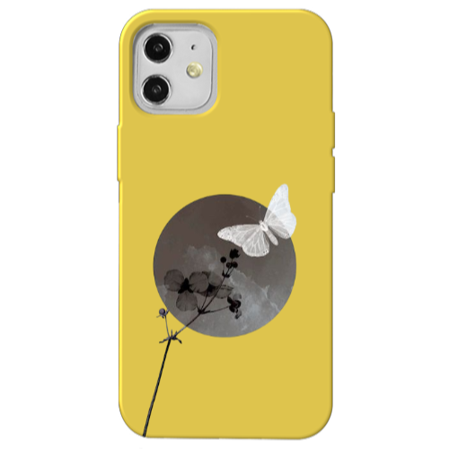 Apple iPhone 12 Mini Çiçek Kelebek Sarı Renkli Silikon Telefon Kılıfı