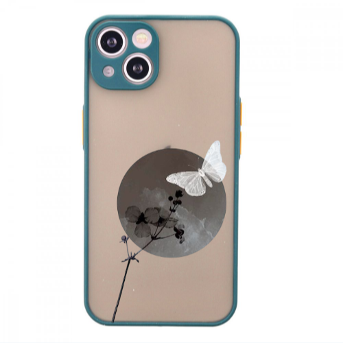 Apple iPhone 13 Mini Çiçek Kelebek Koyu Yeşil Hux Telefon Kılıfı