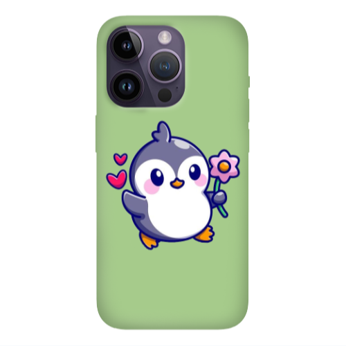 Apple iPhone 14 Pro Çiçek Kuş Açık Yeşil Renkli Silikon Telefon Kılıfı