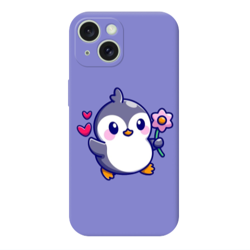 Apple iPhone 15 Çiçek Kuş Lila Renkli Silikon Telefon Kılıfı