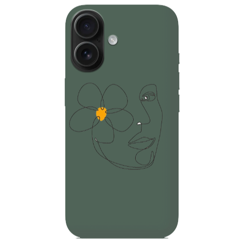 Apple iPhone 16 Çiçek Line Kadın Koyu Yeşil Renkli Silikon Telefon Kılıfı