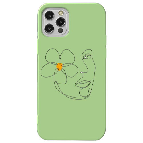 Apple iPhone 12 Pro Çiçek Line Kadın Açık Yeşil Renkli Silikon Telefon Kılıfı
