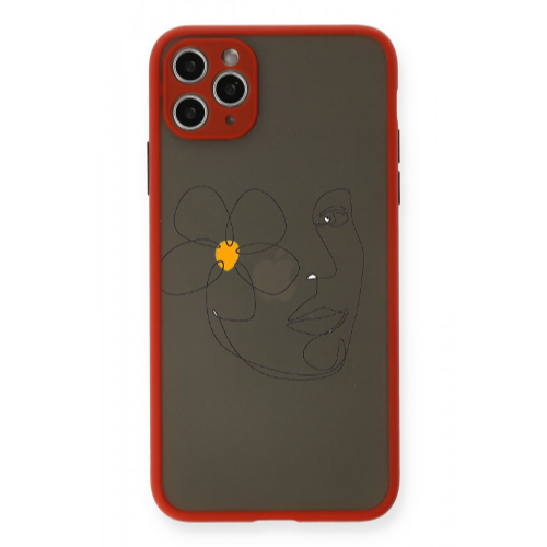 Apple iPhone 11 Pro Max Çiçek Line Kadın Kırmızı Hux Telefon Kılıfı