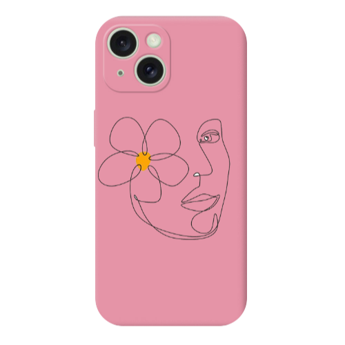Apple iPhone 15 Çiçek Line Kadın Pembe Renkli Silikon Telefon Kılıfı