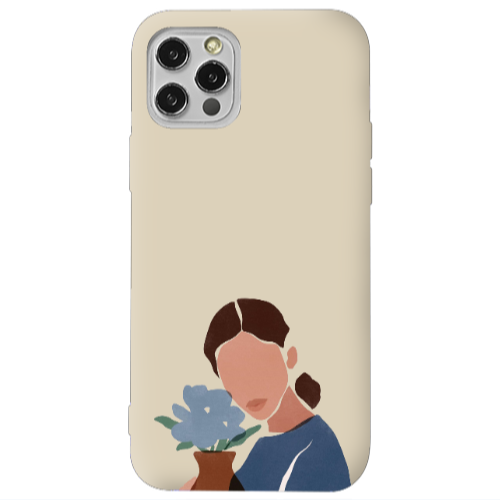 Apple iPhone 12 Pro Max Çiçek Vazo Kadın Krem Renkli Silikon Telefon Kılıfı