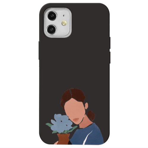 Apple iPhone 12 Mini Çiçek Vazo Kadın Siyah Renkli Silikon Telefon Kılıfı