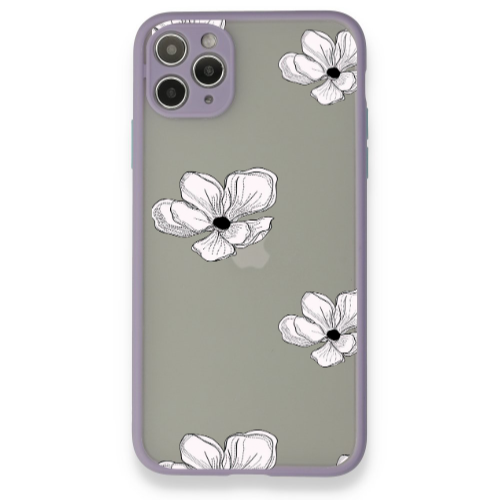 Apple iPhone 12 Pro Max Çiçekler 2 Lila Hux Telefon Kılıfı