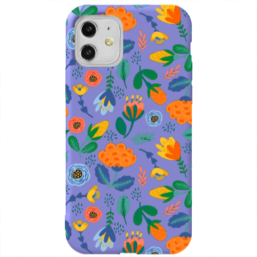 Apple iPhone 11 Çiçekler2 Lila Renkli Silikon Telefon Kılıfı