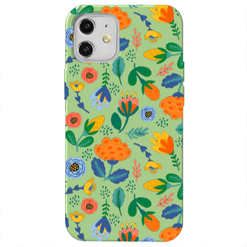 Apple iPhone 12 Çiçekler2 Açık Yeşil Renkli Silikon Telefon Kılıfı