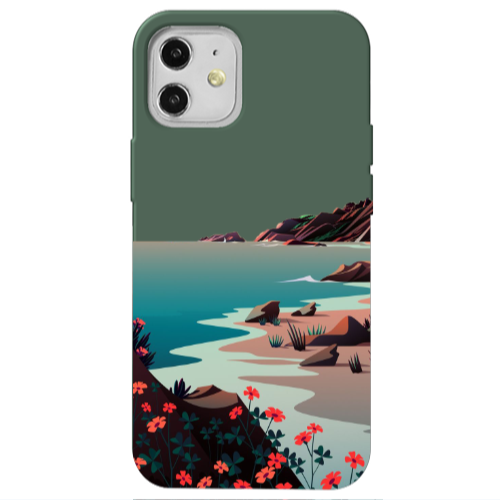 Apple iPhone 12 Mini Çiçekler Koyu Yeşil Renkli Silikon Telefon Kılıfı