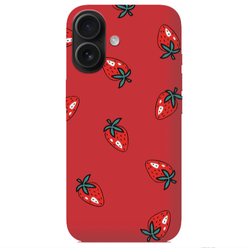 Apple iPhone 16 Plus Çilek 2 Kırmızı Renkli Silikon Telefon Kılıfı