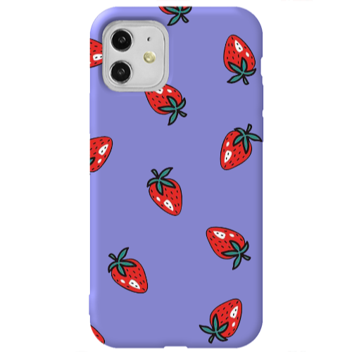 Apple iPhone 11 Çilek 2 Lila Renkli Silikon Telefon Kılıfı