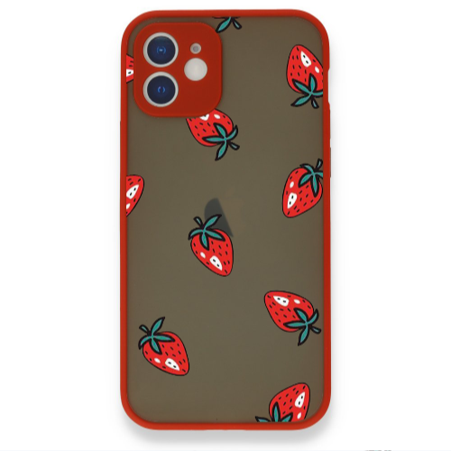 Apple iPhone 12 Çilek 2 Kırmızı Hux Telefon Kılıfı