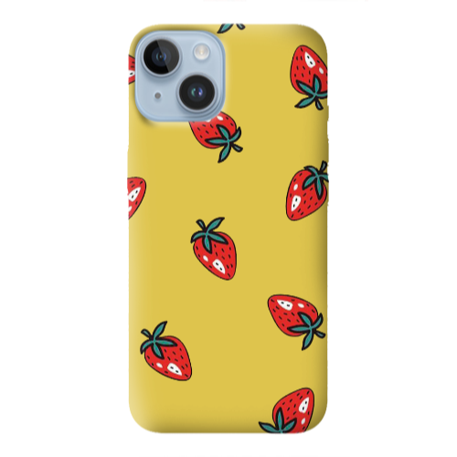 Apple iPhone 14 Plus Çilek 2 Sarı Renkli Silikon Telefon Kılıfı