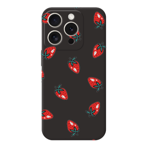 Apple iPhone 15 Pro Max Çilek Siyah Renkli Silikon Telefon Kılıfı