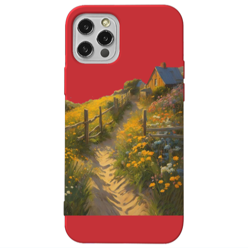 Apple iPhone 12 Pro Çitli Ev Kırmızı Renkli Silikon Telefon Kılıfı