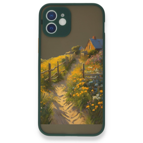 Apple iPhone 12 Mini Çitli Ev Koyu Yeşil Hux Telefon Kılıfı