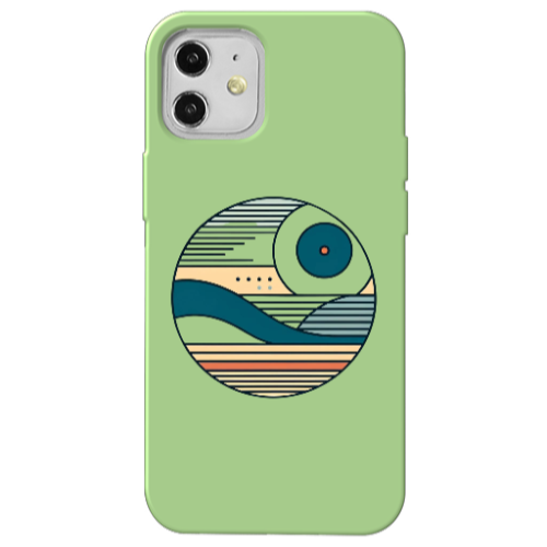 Apple iPhone 12 Mini Çizgi Göz Açık Yeşil Renkli Silikon Telefon Kılıfı