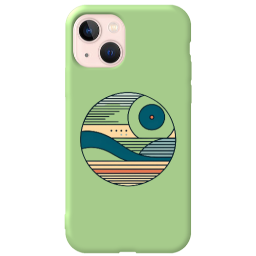 Apple iPhone 13 Mini Çizgi Göz Açık Yeşil Renkli Silikon Telefon Kılıfı